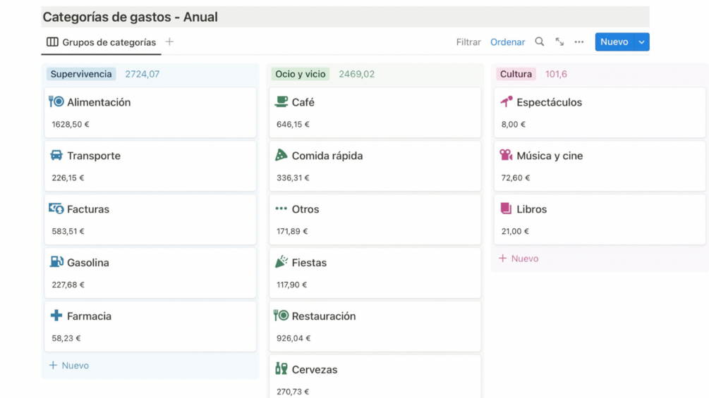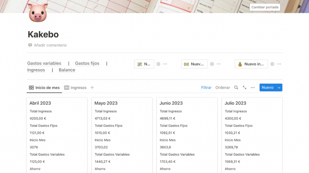 Plantilla de Notion para utilizar cada año para monitorizar tus gastos y ahorrar.